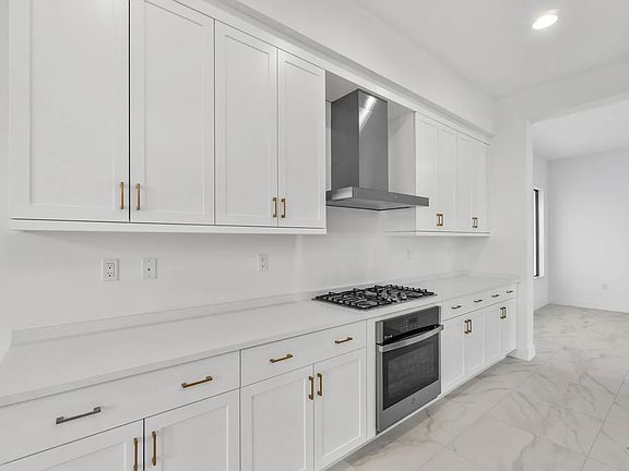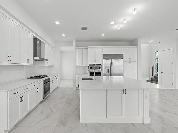 This NEW CONSTRUCTION modern, 5 bedroom, 7 bathroom home offers a breathtaking water view as well as an OVERSIZED CORNER LOT affording you rare privacy in a gated community. As you walk through the front entrance, you will be greeted with gorgeous tile, perfect for keeping cool in the summer, and as you continue through the home, you will find gorgeous HARDWOOD floors- NO CARPET in the home. The kitchen is a chef's dream, featuring beautiful white cabinets that provide ample storage space for all your culinary needs. The large kitchen island offers both a functional workspace and seating for 5 family and friends. With its sleek design and modern appliances, including a gas stove, this kitchen is sure to inspire the inner chef in you. Yard is FULLY FENCED.
