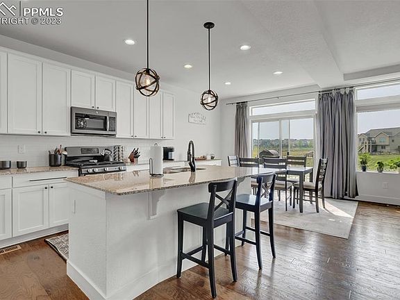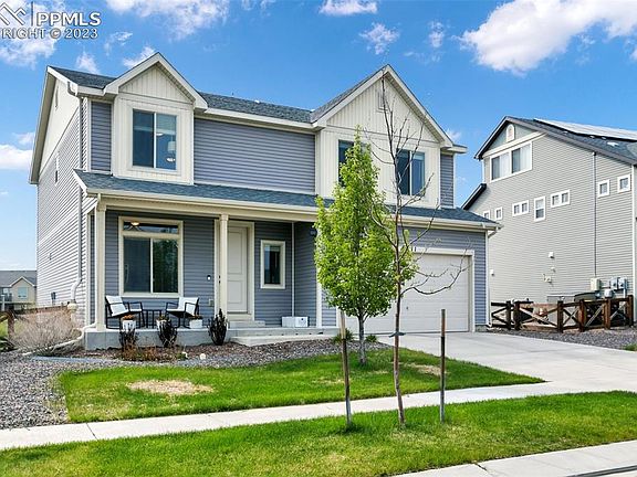 Beautifully updated home now available in the high desired Banning Lewis Ranch Neigborhod. The lot itself is a show stopper, boasting a fully fenced backyard that backs up to a open space with walking and biking trails and unobstructed views of Pikes Peak. This 2 story home located in Distrcit 49, features 5 bedrooms, 4 bathrooms, a loft, an office space, finished basement, and 3 CAR tandem garage for tons of storage. 4 Bedrooms are located on the upper level with beautiful views. The Primary Suit even has an adjoined seating or dressing area. Finishing out the upper level is a spacious loft and laundry room with bonus utility sink. The finished basement boasts 9ft ceilings and offers a 5th bedroom and a family room full of pontential! Make this house your home today!