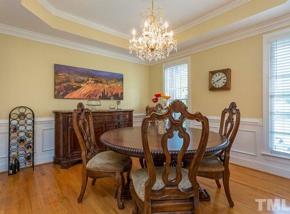 OPEN HOUSE 10/11 FROM 2-4 PM. Spectacular home in Bent Tree featuring 9 ft ceilings, 2 story foyer, trey ceiling, formal living & dining rooms. 1st floor bedroom w/private bath is perfect for guests or office. Open kitchen w/granite counters, stainless appliances & gas cooktop, wall/oven & micro. Private outdoor deck for entertaining, 3 car garage, lots of storage, bonus room w/vaulted ceiling & skylights. Neighborhood features pool, tennis & city greenway trails. Convenient to I-540, RTP, and N Raleigh.