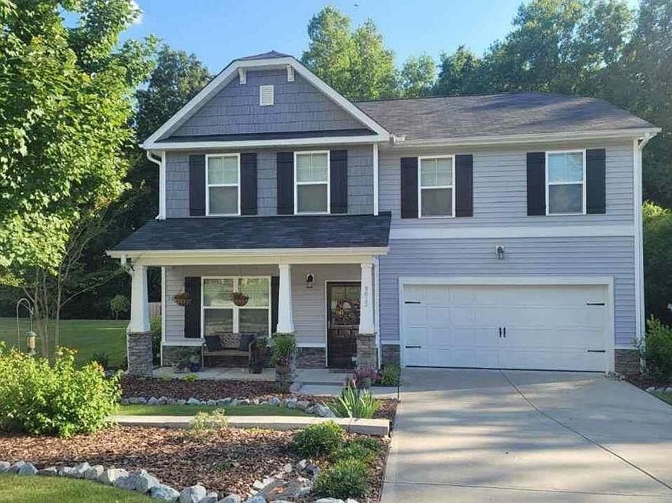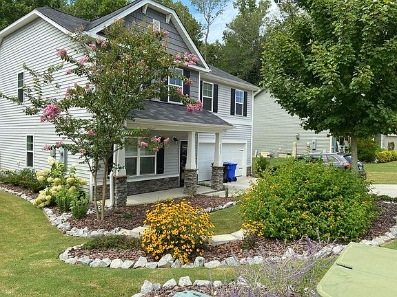 Available 09/30/2021. Rent includes Cable & Internet. Wood floor throughout first floor. 2 story home with 4 bed, 3 bath and a loft area in a large lot with a wooded backyard with a fence in Johnsons Landing subdivision. 1st- Floor includes formal living/office, formal dining, huge living room with fireplace, large Kitchen with SS appliances, glass tiled backsplash, big breakfast area and a powder room. 2nd floor includes large master bedroom with jetted tub, walk-in shower, and 3 other great-sized bedrooms with closets with a jack and jill bathroom and a loft area. Washer, Dryer, and brand new Refrigerator included. Ceiling fans in all 4 bedrooms, loft, and living room. Amenities include Johnsons pond view from clubhouse and Pool! Perfectly positioned in Wake County with good schools and easy access to I-540, NC 42, US 401, and NC 55. The renter is responsible for paying all the utilities and maintaining the yard. HOA fee is paid by the owner. The tenant/renter is responsible for paying all the utilities including water, electricity, gas, sewage. and maintaining the yard. HOA fee that includes cable and internet is paid by the owner.