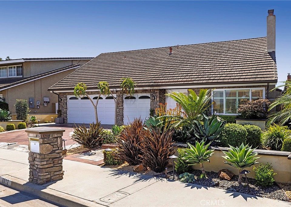 HUNTINGTON BEACH - Just one house away from the gorgeous grounds and ballfields of 17-acre Langenbeck Park in the heart of Huntington Beach, this lovingly maintained and upgraded home is ready to embellish your lifestyle. First impressions are memorable thanks to newer professionally designed hardscaping and landscaping, complete with a custom driveway and a variety of mature palms and plants, all complemented by upgraded stone accents. Double entry doors open to an impressive interior that spans approximately 2,348 square feet and offers four bedrooms and two- and one-half baths. The foyer is highlighted by a grand staircase and opens to a formal fireplace-warmed living room large windows and dramatic vaulted ceiling. Formal entertaining can easily continue in an elegant dining room with colorful stained-glass windows and a stunning chandelier. For casual occasions, the family room presents backyard access, crown molding, a fireplace with stone and wood surround, and a seamless flow to the kitchen. Whether it is mealtime or snack time, the fully appointed kitchen boasts a custom ceiling, granite countertops, wood cabinetry with a built-in pantry, a garden window overlooking the backyard, and stainless steel appliances including a Samsung refrigerator. Recessed LED lighting, woodgrain plank and tile flooring, smooth ceilings, ceiling fans and custom window treatments add an upscale aesthetic throughout. Baths are refined with tile shower surrounds and granite countertops, one bedroom features built-ins for a home office, and the attached garage accommodates three cars. Wainscoting enhances the primary suite, where homeowners will appreciate multiple closets with mirrored wardrobe doors and a customized bath with two sinks. Outdoor entertaining, gardening and simple relaxation is easily enjoyed in the backyard. In addition to its outstanding location mere steps from Langenbeck Park, this exceptional home is close to Perry Elementary School, Talbert Middle School, major shopping centers, countless dining opportunities, and downtown Huntington Beach’s pier and beaches.