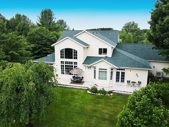 Enjoy the peace and serenity at your private sportsman's estate nestled on 80 secluded acres of natural wildlife habitat with numerous hiking and ATV trails wandering throughout the property along with a pond and permanent hunting blinds. The expansive five-bedroom, five-bath home features over 4800 square feet of living space on three levels. Relax at your custom home, boasting a high cathedral ceiling, showcasing fine workmanship and quality materials, and offering relaxing views in beautiful Manistee County. The covered wrap-around porch with vinyl railings and decking welcomes you home in true Northern Michigan style. Inside, the great room invites relaxation with its natural gas fireplace, while the custom kitchen is sure to delight any chef. The main floor features a primary suite with a walk-in closet and a convenient laundry room. The walk-out lower level includes a second kitchen, ample storage areas, and a versatile space that can be used as a fitness area, office, or additional family room. The property also includes a 25 x 36 three-car attached garage, a 32 x 40 pole building, an additional garage with water and electricity, and a garden shed, providing ample storage. Situated on 80 acres, the estate includes a small private pond, permanent deer blinds, and trails throughout. (The adjacent 40 acres included in this sale, has Little Bear Creek running through it, offering steelhead in the spring and salmon in the fall.) This is your private estate where you can enjoy Pure Michigan, Lake Michigan, world-class trout streams, and numerous recreational activities. You can explore other nearby attractions, including Onekama and Portage Lake, Chief Lake, Lake Michigan, and golfing and skiing at Crystal Mountain. Shopping and dining options are available in downtown Manistee, Beulah, Frankfort, and Traverse City. B