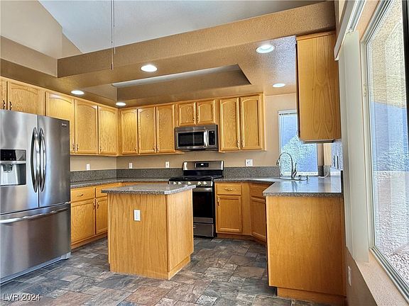 - Description: Island,Lighting Recessed,Solid Surface Countertops,Stainless Steel Appliances,Tile Flooring,Vaulted Ceiling