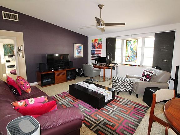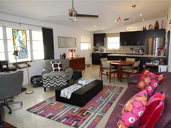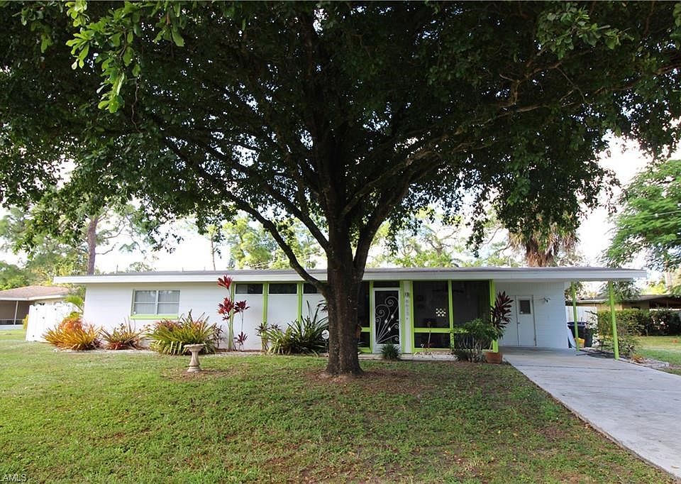 What a funky cool vibe in this charming bungalow in Ft Myers Villas! 3 Bedrooms, 2 Baths, plus carport located on a corner lot. Plenty of room within the fenced in backyard to add a pool! Home has vaulted ceilings - unusual for the time period it was built - which really opens up the living area! The kitchen has been totally updated with a long quartz peninsula and counters, wood cabinets and stainless steel appliances. The Guest Bath has also been updated. Two bedrooms share a Jack 'n Jill Bath with a vintage sunken tub/shower combo and sliders to a private area that would be perfect to add an outdoor shower or sitting area. The Master Bedroom features a walk-in closet that stretches across the entire wall. Terrazzo floors throughout add to the retro charm. Enjoy balmy evenings on the screened in front porch. There's also a storage area off the carport that houses the washer and dryer. Close to everything South Ft Myers has to offer - restaurants and movies at Bell Tower; FSW; medical, groceries; about 20 minutes to RSW Intl Airport and to beaches.