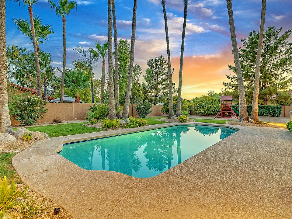 Beautifully Updated on HUGE sprawling corner lot in the prestigious Cactus Corridor. Enter to soaring ceilings, plantation shutters, beautiful fixtures, spacious formal living & dining rooms accommodate a variety of furniture sizes. Updated gourmet chef's kitchen flows to family room with FP & views to the lush backyard & sparkling pool. Tile in all the right places, new carpet in all the rest! Master retreat with FP & separate patio exit. Stunningly remodeled master bath in clean & crisp white color palette including his & hers quartz top vanities. Spacious secondary bedrooms feel like masters themselves. Lush backyard, towering palm trees surrounding the sparkling play pool that is recently resurfaced. Huge sand play area with tot lot that was formerly a sand VB court. (Sand volleyball court can be restored easily by new Buyer.) Store all of your toys with the large RV Gate and storage area beside the 3 car garage. Privacy is afforded with this oversized lot, and no towering 2 stories on any side. Newer roof, freshly painted exterior, newer water heater. Upgrades galore. Be anywhere in the Valley with convenient access to the 101. This home is sure to go quickly! Be the first to view this extraordinary property that is sure to please the fussiest Buyer!