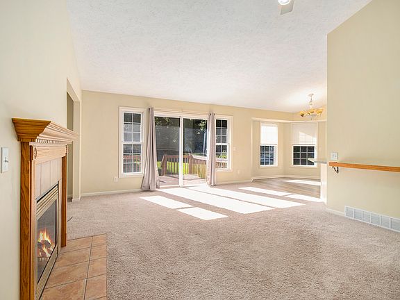 Four bedroom, 3 bath ranch home in Stratford Hills neighborhood with over 2,800 finished square feet of living space. Open floor plan. Living room with gas log fireplace & cathedral ceiling. Dining room with wood floors. Kitchen with snack bar & built-in pantry. Master suite with walk in closets & separate shower. Main floor laundry. Finished lower level with family room, second fireplace, wet bar, full bath & two bedrooms. Attached 2 car garage. Deck overlooks back yard that backs up to woods. Mattawan Schools.