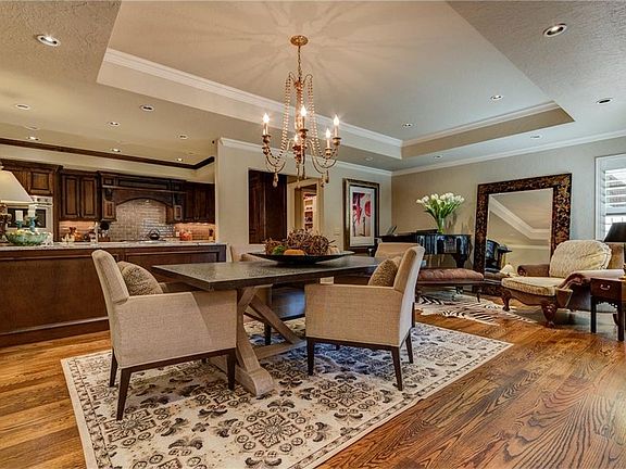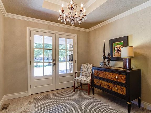 STUNNING home in quiet area. The finish work on this home is outstanding in every way. Beautiful wood floors and high ceilings in most living spaces. Grand cook's kitchen with every amentity. High end Thermador appliances, large built-in refrigerator, built-in ice maker, large quartz covered island and huge pantry. 2 full baths and a powder bath for quests. Back yard is like a vacation dream resort. Reverse infinity pool with built-in spa, tons of beautiful trees, shrubs and flowers. Two sitting areas, a gas firepit and just enough grass for the pooch. Large master bed and renovated master bath with double vanities and a large shower with glass door. Double California closets. Optional bedroom with wood flooring. Over sized two car garage and storm shelter. Sprinkler front and back. You will love this home.