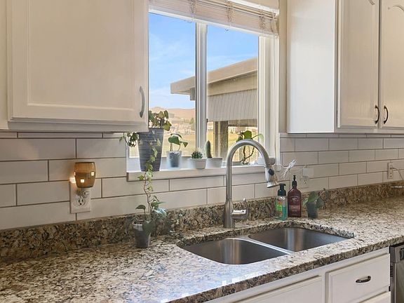 Beautiful open views of golf course/ sunsets, new patio awning with retractable sunshades. RV parking, fenced yard with 2 sheds. Enjoy summers, soaking in the HOA pool/spa. Home is on a culdesac, easy to maintain front, and spacious back yard. finished basement 2020, has a salon that could convert to kitchen /full bath for apartment. Updated kitchen granite countertops, subway tile back splash, luxury vinyl floors, white cabinets. Includes $4k carpet and paint allowance!