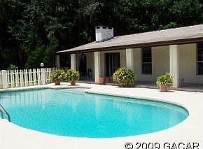 Great Pool home on 1 acre close to everything including Oaks Mall, I-75, hospitals, UF/Shands. This 3 Bedroom, 2 full baths and a pool half bath is ideal for those that like their privacy and space to run around. Fresh paint inside and out, big sparkling pool with a built-in table for your refreshing beverages, living and dining room plus a family room with a fireplace and new carpet. Spacious Master suite has a luxury bath with a jetted tub and sky light. Oversized garage with space for a workbench.