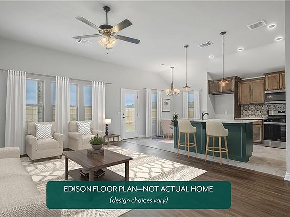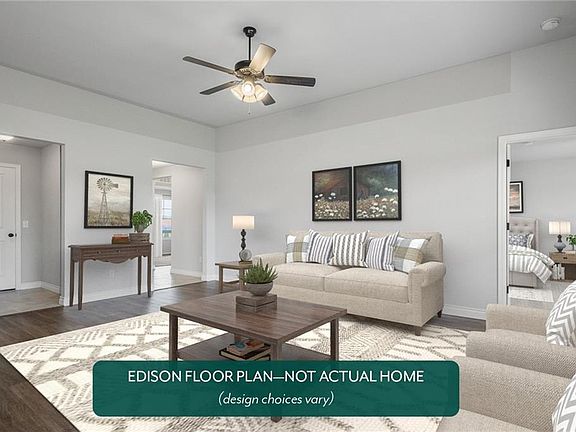 The kitchen comes equipped with a large island facing the living room that is perfect for entertaining, a spacious walk-in pantry that offers plenty of storage, quartz countertops, a gas range, and a farmhouse sink. The main living areas include luxury vinyl plank flooring and the home features an upgraded landscaping package. The primary bedroom is spacious with a large walk-in closet and a tiled shower in the primary bath. Abbot Lake is a beautiful new community with convenient access to I 240 and Tinker Air Force Base in the Moore school district will wow you with its secluded location and two ponds. Future amenities in this neighborhood include a fishing dock, playground, and splashpad. Included features: * One-year home warranty * 10-year structural warranty * Guaranteed heating and cooling costs * Fully landscaped front & backyard * Fully fenced backyard. Floorplan may differ slightly from completed home.
