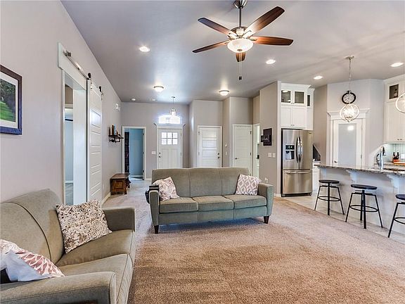 What a great open floor plan with true 4bd rooms! This home has lots of goodies! Stacked stone fireplace inside and one outside to roast marshmallows.! It has upgraded garage door openers that have air compressor, fan, & extension cord built in! All stainless steal appliances and gas stove! Ceiling fans throughout and don't forget about the wonderful Australian closet! You will never run out of hot water with the tankless hot water tank! Wonderful cabinets in the kitchen stack to the ceiling, also has a nice pantry! This also has a whole home air purification system and fresh air ventilation! Wait there is more! Great storm shelter, under ground sprinkler systems, blinds, ring door bell, granite throughout and Jetta tub! Street is on a cul-de-sac for less traffic! PICS are coming soon! It does have a community Park!