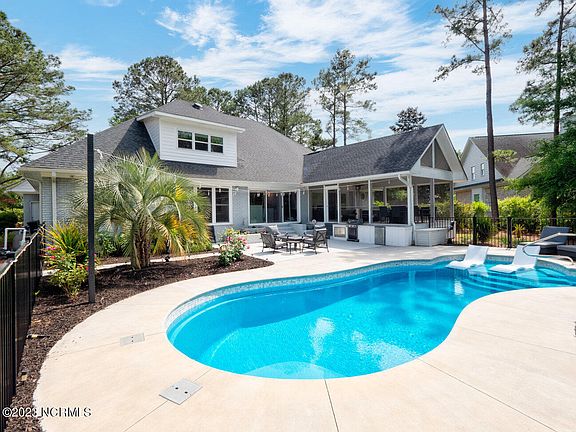 Introducing 8613 Vintage Club Drive, situated on a stunning lot with rolling hills and pond views located in the gated community of Porters Neck Plantation. This 4-bedroom brick home has been completely remodeled top to bottom and is an entertainer's dream with the open kitchen and screened-in porch overlooking the pool and tranquil pond. The gourmet kitchen is completely renovated with quartz countertops, all new appliances including a double oven, chef-size refrigerator and freezer, and a beverage center. The master suite showcases hardwood floors, his and her sinks, walk-in shower, and a tub. The main level split floor plan offers two more bedrooms sharing a full bath plus an office, a sitting room overlooking the pool, and a half bath. Upstairs boasts another bedroom with full bath and an oversized game or movie room. The house has been freshly painted, has new HVAC units, a fully-encapsulated crawlspace with dehumidifier, a new inground saltwater pool, landscaping, screened-in porch, and an outdoor grilling area.