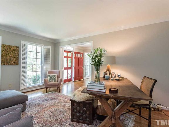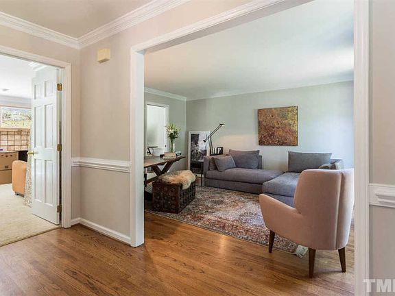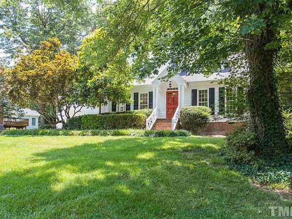 Charming 3 bed Cape Cod in prime location of Raleigh! Fenced yard w/.45 acres & private wooded backyard. Interior features incl'd granite countertops w/tile backsplash in kitchen. Viking cook range & SS appliances. Moveable granite kitchen island perfect for cooking needs! Hardwoods main floor & new carpet upstairs. Large master bedrm has plenty of space, built in bookshelves. Updated Mstr bath w/granite countertops, tile floor & lrg frameless walk-in shower! Home freshly painted! 1 car oversized garage.
