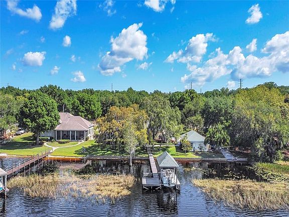 Florida lake front living at its best. Gorgeous CUSTOM built home on beautiful Cherry Lake. Put your boat in on your private BOAT RAMP and enjoy cruising thru Lake Susan, Lake Minneola, and Lake Minneaha to name a few. Lake front backyard offers your very own BOAT DOCK, sea wall and covered boat lift. The back porch includes a inground HOT TUB, firepit, pavers and a large area for entertaining and watching fantastic sunsets. The home comes with many extras including a large home GENERATOR, inground propane tank(firepit, fireplace and generator),long lasting poured in place concrete in the walls, metal ductwork( no fiberglass) which is great for allergies, entire home vacuum system, insulated air conditioned garage, 13 camera security system, under cabinet lighting, hardwood floors and pest tubes in the wall. There is also a detached MOTHER-IN-LAW SUITE/OFFICE that has over 830sqft. This perfect location on Cherry Lake Road has quick access to the turnpike and is located close to downtown Clermont and Groveland. Come see this gorgeous home and lakeview today!!!