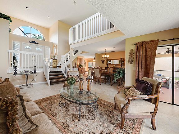 Fabulous home in rarely available Wedgwood Estates! Beautiful multi-level home with a breathtaking view to the south and north. This 3 bedroom 2 1/2 bath is a decorator's dream with soaring ceilings. Home includes a new roof in 2006, many updates in the kitchen and bathrooms. Just spent 40,000 on knocking down wall from kitchen to open the space up, added new white solid wood cabinets, and quartz throughout with a copper sink. Separate dining room!!! Refrigerator, washer and dryer are new within the last year. Floors updated recently. First floor master suite with dual sinks and his/her closets. Lovely powder room on the 1st floor with a darling pedestal sink. 2 spacious bedrooms upstairs with an open loft! Dual air conditioners updated in 2010 and 2015. This architectural dream is light and bright. Enjoy Florida nights on one of the two charming outside patios!!! Right on golf course with a good size yard and porch beautiful views! Additional updates other than the kitchen include : the stairs being changed from carpet to laminate, the loft being changed from carpet to laminate, new garage system, all popcorn ceilings removed, and whole home repainted indoor, all new appliances in kitchen, which include a fridge, dishwasher, stove top, and high end refrigerator. Ready to move in not one thing needs to be changed. 3 bedroom home with an extra loft and an extra office/living space that comes with French doors. Whole house comes with impact windows as well. Come check it out you won’t be disappointed!