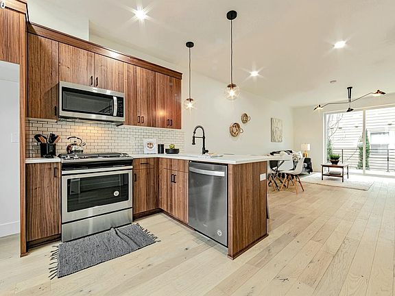 Unique opportunity to move into a practically brand-new 2BR/2.5 bath townhome located steps from lush Cathedral Park. Tall ceilings, sleek finishes, custom blinds, and energy-efficient appliances offer an upscale living experience in a distinctive neighborhood. Built in 2020 as part of a 6 unit complex, this 2 floor home makes an immediate impression. The first floor is a bright and airy open concept kitchen + living space with a bathroom and large sliding glass doors that open onto a wood deck balcony. The peaceful upstairs features the primary bedroom & large bath, linen closet, HE washer & dryer, and spare bedroom/office & bath. Super efficient Mini-splits located both upstairs and downstairs to keep things comfortable no matter the weather. Kitchen Features: +High-end Bosch fridge/freezer +Stainless steel gas range, microwave, and dishwasher +Stone slab countertops +Walnut veneer cabinets Living Area Features: +Large sliding glass doors +Mini-split AC/Heat unit +1/2 Bath +Wood deck balcony +Modernist light fixtures Upstairs Features: +Walk-in closets +9"-11" high ceilings +Mini split AC/Heat ceiling unit +Shower over tub in primary bath, shower no tub in secondary bath +Walnut veneer bathroom cabinets, stone slab vanity tops +HE washer and dryer LEASE TERMS: +12 month lease, available 12/20/23 (dates can be negotiable) +$2,450 security deposit +Tenant responsible for all utilities (electricity/gas, water, WiFi, trash/recycling) +Owner covers monthly lawn care. +Pets allowed only with owner approval and add'l deposit. +No-smoking +Applicants with an insufficient credit score (less than 650 will not be accepted) Renter is responsible for gas, water, electric and garbage. Small dogs under 20 lbs allowed.
