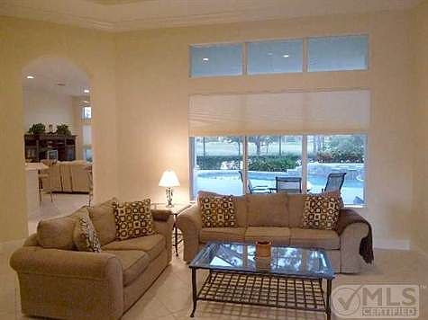 Priced to SELL ! This Spectacular and in Mint Condition 4 bedroom Arlington Model in PGA Village, beautifully decorated (furnishings INCLUDED), neutral colors, beautiful ceramic tile throughout, fabulous cooks kitchen/Family room w 42 inch cabinets, pantry, open floor plan with sweeping trayed and coffered ceilings,Formal Living and Dinning, Master Bedroom is stunning w pool access, Fabulous Master Bath,lush landscaping, outdoor living includes Heated & screened in pool, Jacuzzi, bbq grill all the while taking in the lake and golf views. 2 guest en-suite bedrooms and a 3rd guest room/office make this fabulous home a must see for the pickiest Buyer.