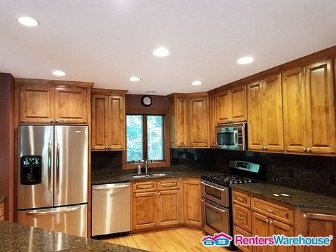 Available Oct 1st! This 3 bed home sits on a 1.8 acre lot, fully fenced in! Incredible views from the deck alone make this a gem. Inside features a gourmet kitchen, breakfast bar, open living room with gas fireplace, and dining area with 2 patio doors to the deck, half bath and laundry. Upstairs boasts a large master bedroom with exquisite master bath including sauna and walk in closet! 2 other great sized bedrooms and large 2nd bathroom with jacuzzi tub! The list of things that make you feel like royalty in this home is endless. Basement features a family room with another gas fireplace, 3/4 bath, wet bar and 2 more doors to access lower patio. Attached and heated 3 car garage! Make this your home for years to come and book a tour online with Amanda from Renters Warehouse today. Security deposit same as rent, pets welcome with additional deposit. Tenants responsible for gas, electric and trash. Well water. App fee 55 per adult. Home is not section 8 approved.