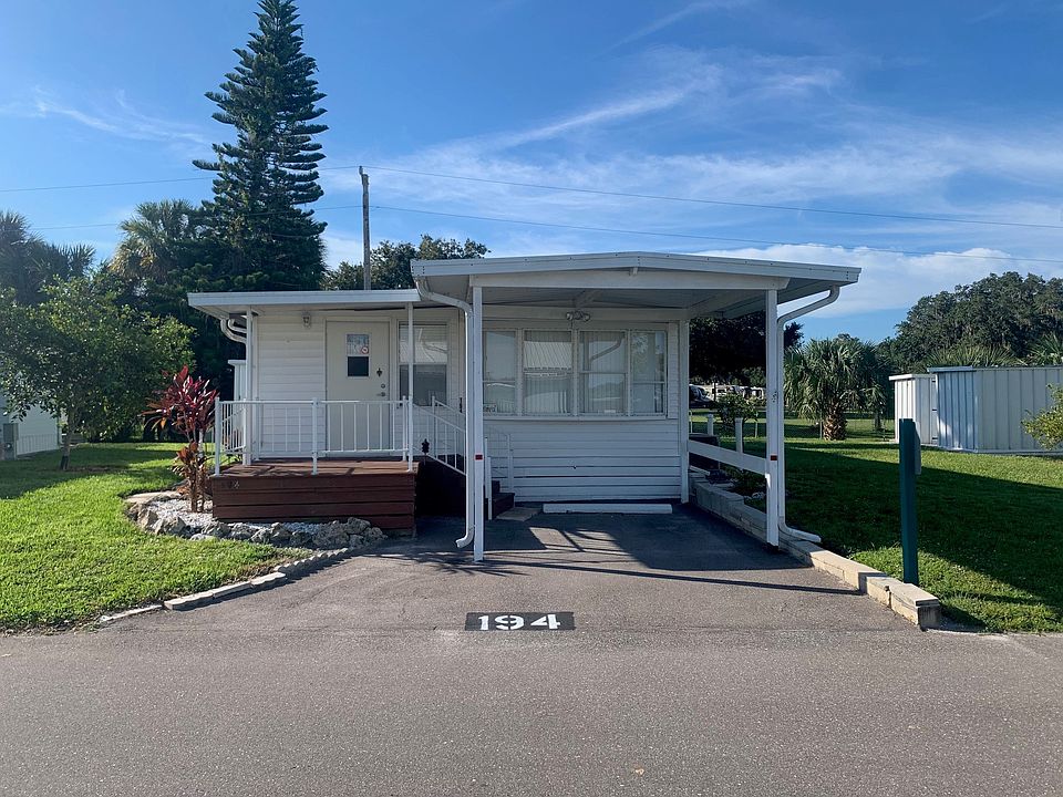Perfect location, perfect price and perfect time to buy. 1 bedroom 1 bath park model features high ceilings, open floor plan, plenty of natural light and more! This home offers a covered carport and front porch! PLUS an indoor washer and dryer! Extra storage in the shed. Fiesta Grove RV Resort is an active adult 55 community with a heated swimming pool, shuffleboard court, bocce ball and many other amenities and activities to do throughout the entire year. Situated between St Petersburg and Sarasota within minutes of many attractions such as beaches, shops, dining and much more.