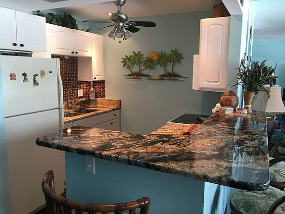 Beautiful condo on Sunset Beach just a 2 minute walk to the beach. Excellent intercoastal views from the couch. Completely remodeled with granite countertops, Hallmark real wood flooring, granite/marble bathroom and shower, Hunter Douglas blinds, new windows, new central Heat & Air unit with 10 year parts & labor warranty... too much to list! The nicest one bedroom condo unit you will find in an excellent location on desirable Sunset Beach. Low HOA fees. Located in well maintained and excellently managed Sunset Beach Club.