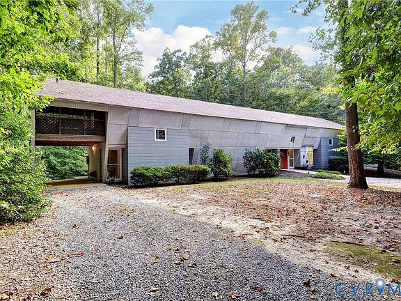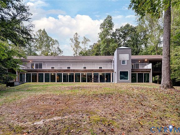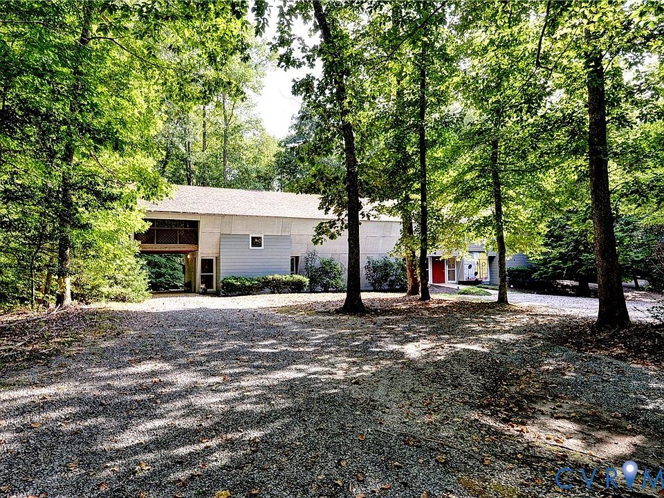 Combining the Bauhaus style and the style used in Frank Lloyd Wright's Falling Water House, Dr. Dennis Kilper from Virginia Tech created this ONE OF A KIND on over 13 acres! Tucked away on its own private oasis in New Kent, this concrete home offers an indoor lap pool ready for all seasons with its own bathroom and laundry facilities. From almost every room in the house, one may enjoy the peaceful wooded backyard and pool views. The unique gas fireplace, built in shelving and wooden beams throughout provide that artistic flare and warmth- not to mention the heated floors. The two downstairs bedrooms/office with bathroom and kitchenette area may be used as a mother-in-law suite or as an in home office with its own entrance. Two primary bedrooms with their own en suites are located on the second floor each leading to the full length top deck. One of the primaries has its own private screened in porch (which makes you feel as though you are in the top of the trees), own back deck and an outdoor/indoor shower area. This primary shower and jetted tub have sliding glass doors as sides that open up to the back balcony and an amazing moon roof to enjoy the stars at night while soaking in the tub. With three laundry facilities, you do not have to go far to clean your clothes. Want extra income? Have guest that you prefer to be a little separate from you? No problem. The almost 600 square foot cottage on the property that has its own loft, kitchen area, bathroom, laundry and two outdoor patios may be used as a long term/short term rental or as a guest house. Within a few minutes to I64, you can make it to Richmond or Williamsburg in about 30 minutes. Privacy, uniqueness with convenience.