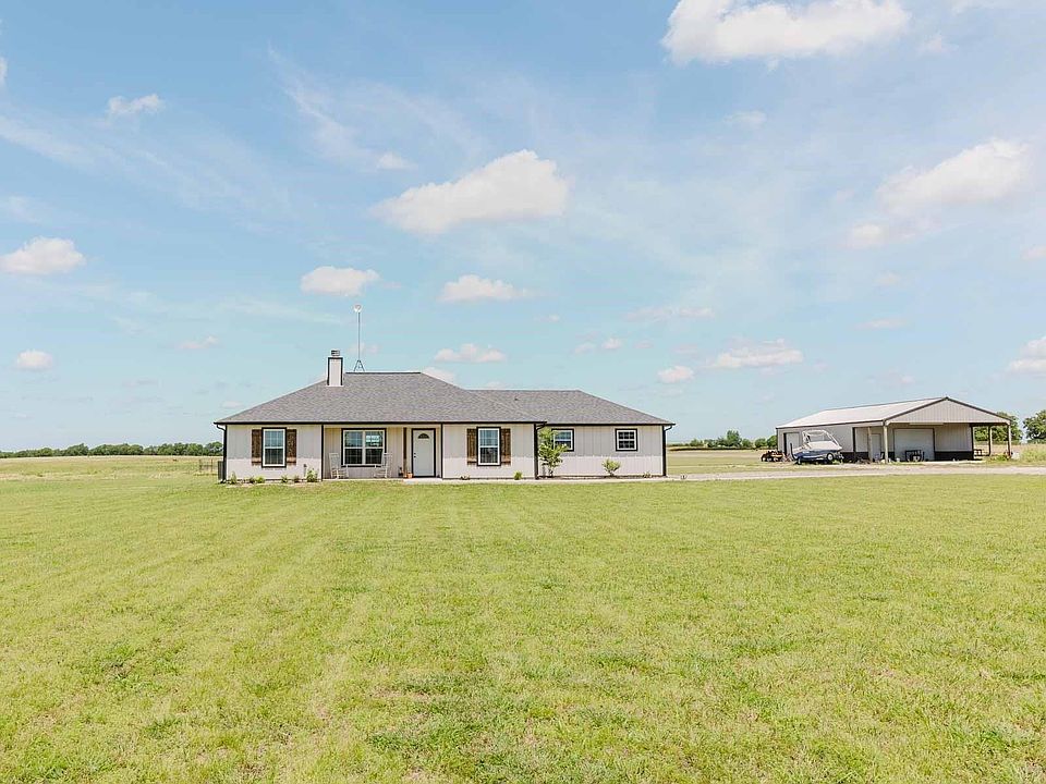 Step outside to enjoy a peaceful covered front patio or relax on the back porch while taking in breathtaking Texas sunsets. The expansive acreage is ideal for horses or livestock, offering endless possibilities for outdoor living.