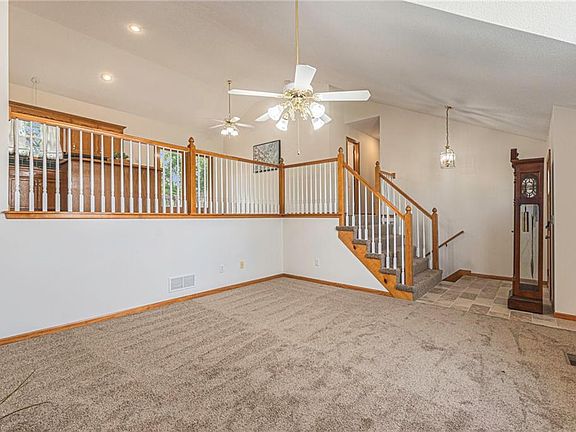 Highly desirable location and floor plan plus a plethora of updates you will definitely enjoy! Comfortably situated on a culdesac street with a separated main level living room open to the 2nd level eat-in kitchen. Both spaces all encompassed under one great vaulted ceiling. Fresh paint and flooring throughout. Easy entertaining with a center kitchen island plus even easier cleanup with new dishwasher and kitchen sink, faucet and disposal. All bedrooms are easily accessible to each other on the same level with an efficient walk-in closet and renovated ensuite bath in primary bedroom. Relax in the new tile shower or the separate soaking tub, whatever your preference may be at the end of a long day. All bathrooms have new vanities, toilets and fixtures! Two living areas are a must for everyone in the family & the lower level walks out to enjoy the outdoors. Lower level family room with convenient half bath and laundry area already equipped with washer and dryer. Additional storage space in sub-basement to meet your organizational needs. Peace of mind with a new water heater, HVAC and addition of a 2nd battery operated sump pump in 2022. New technology includes electronic keypads for front door and house-garage door, “My Q” remote garage door opener and Blink doorbell camera. Neighborhood with KCMO address but Liberty schools, 2 pools and play area.
