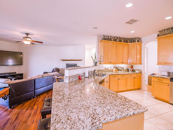 Westside single story ranch home features open floor plan, leaded glass entry door, formal living & dining rooms, huge family room with eating area off kitchen & breakfast bar, pellet stove in family room, french doors to covered patio, spacious kitchen has granite counters, stainless appliances & huge pantry. 3 bedrooms/2 baths on west side of house, master suite on east side of home with walk in closet & separate tub (whirlpool) & shower, granite counters & dual sinks. Also has laundry room, 3 car attached garage with roll up doors.