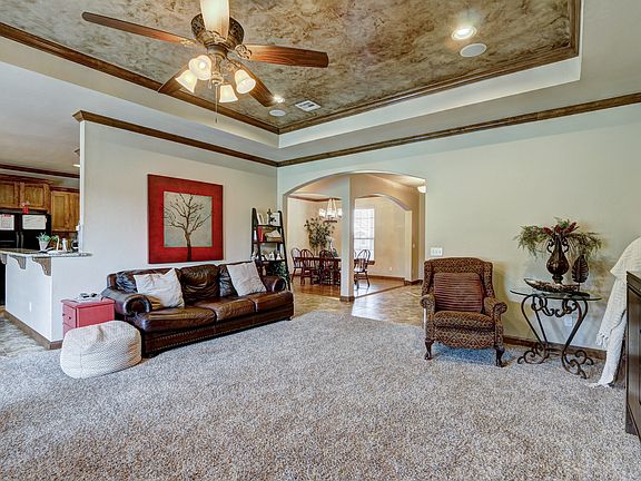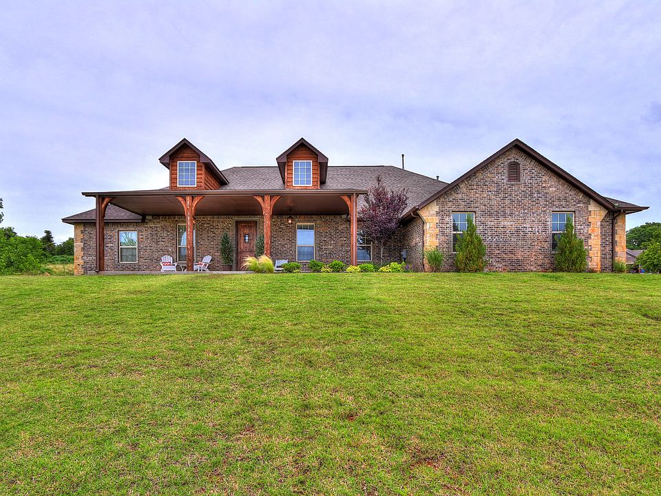 Just beautiful! This lovely home is almost brand new and well maintained. Large 1-acre corner lot with oversized side load insulated garage. Stunning amenities including 3 cm granite countertops throughout, hardwood floor in formal dining, spacious living & master bedroom with vaulted ceiling, master bath has jetted tub and separate tiled shower, 2" faux blinds, Low E windows, the kitchen has a pantry and stainless steel appliances, speaker on the front and rear porch, built-in surround sound in the living room for entertaining. Luxury addition is this home located just South of I-40 for a quick drive to Tinker, Boeing, shopping, dining, and more. Call today for a private showing.