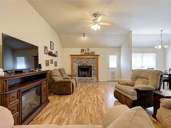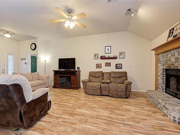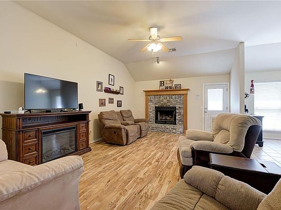 Lovely home in the Praire Ridge Addition, Moore Schools. Large living area with beautiful wood floors, wood burning fireplace. Spacious dining room, kitchen breakfast bar, plenty of cabinet and counter-top space, new double oven with built in air fryer and griddle. Large master bedroom, master bath features a double vanity plus a separate tub and shower with two walk-in closets. New ADT security system with upgraded windows and door sensor's. Open back yard to a field, large backyard with a pergola. 3 car garage. Well cared for home ready for the new owners.