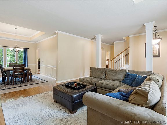 Move-in ready home in desirable Brookline Square, just minutes away from Jenks East Elementary. With a perfectly manicured yard, freshly painted kitchen cabinets and great room, this home has it all. The primary suite is downstairs and includes double closets, a full tile shower and soaking tub. Upstairs includes three spacious bedrooms with great closets, plus a bathroom with dual sinks and a flex room! The roof and HWT were replaced in 2019 and ALL NEW windows in 2021. The downstairs AC unit was replaced in 2016 and the coil was replaced in the upstairs AC unit. This is one you won't want to miss! COMING SOON - NO SHOWINGS OR OFFERS UNTIL 5/17