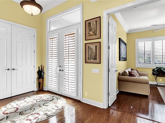 - Interior Features: Ceiling Fans(s), Eating Space In Kitchen, High Ceiling(s), Master Bedroom Downstairs, Open Floorplan, Stone Counters, Walk-In Closet(s), Crown Molding, Solid Wood Cabinets, Thermostat, Kitchen/Family Room Combo, Window Treatments