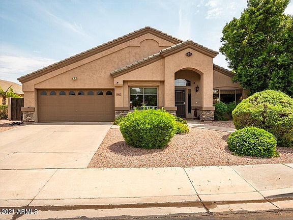Fantastic 4 bedroom/2 bath Former Model with bonus room. This Vaulted beauty boasts extensive wood plank tile & chef's delight central kitchen with maple cabinets, granite counters, huge walk in pantry and newer (2016) Stainless Steel appliances with gas cooktop! Cozy Gas fireplace in 'Greatroom style' family room leads you out to the 33 foot covered patio with misters, overlooking the sparkling Pebble Tec play pool with two water falls & Built-in BBQ Grill! This Desirable Split Primary plan has extended shower and jetted tub! 2 bedrooms open to one another! . WOW: Win, Win, Win: Low HOA! LOW Mesa taxes! Desirable Gilbert Schools! Two distinct phone lines for those whom work from home! Whole House water filtration system! HVAC new in 2018! New faucets & H2o Heater! sun screens(in garage)