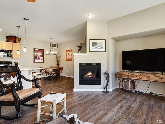 Welcome home! Palomino Park is a gated resort-style community located in Highlands Ranch. This incredible ranch style home is living at its best with new granite throughout, new light fixtures, new sinks and faucets. All rooms on one level! The living room boasts a gas log fireplace and is open to the kitchen and dining room. The kitchen has gorgeous new granite countertops, new SS large one-bowl sink and faucet, maple cabinets, currently has glass-top electric oven but gas line is behind range if gas stove desired, large island with pendants and breakfast bar seating. Luxury vinyl planking installed throughout (no carpet). Laundry room with GE washer and dryer included (one year old), new granite counter and storage cabinets. Primary bedroom with walk-in closet, ensuite bath with new granite countertop, sink and faucet, oversized shower and large linen closet. The secondary bedroom has a large closet, ceiling fan, sliding door provides abundant light (currently used as office). Secondary full bath with tub and new granite vanity top with new sink and faucet. The large covered patio has a gas line hook up for your outdoor enjoyment. Oversized attached one car garage with storage. Notables include newer range and microwave, 50 gallon water heater and surge protection on the panel. Wonderful, quiet and peaceful location within the complex. Palomino Park amenities include fitness center, pool, hot tub, clubhouse, tennis/pickleball, basketball, playground, frisbee golf, dog park, putting green, volleyball and trails. Welcome to the stunning gated resort-style community of Palomino Park!