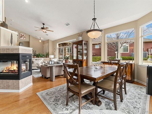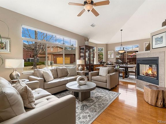 Price Improvement. $16,000 recently invested in a new furnace/AC! Stunning Ranch Home in Coveted Gold Peak. Gated Resort-Style Living in Highlands Ranch! Welcome to this beautifully maintained home, offering luxurious main-floor living in one of Highlands Ranch’s most sought-after gated communities. This handicap-accessible ranch-style home boasts an impressive layout and access to exceptional resort-style amenities. Step into a light-filled living room featuring vaulted ceilings, a 3-way fireplace, gorgeous engineered hardwood flooring, and custom Hunter Douglas window shades—a warm, inviting space perfect for both everyday comfort and entertaining guests. The chef’s kitchen is a showstopper, offering expansive countertops, rich cherry cabinetry, a center island with storage and a breakfast bar, a stainless steel sink, stainless steel and black appliances, a walk-in pantry, and a sun-drenched dining area with a vaulted ceiling. Your spacious primary suite is a true retreat, featuring a cozy sitting area/library with a fireplace, direct patio access, and a huge walk-in closet. The guest bedroom also offers patio access, a ceiling fan with lighting, a sliding door with built-in shades, and gleaming floors. The adjacent 4-piece guest bath features tiled flooring, a soaking tub, and a separate shower stall. A private hobby room sits just off the rear patio—perfect for creative projects, storage, or your next passion. The patio includes a gas line for easy grilling and outdoor entertaining. As a Gold Peak resident, you’ll enjoy exclusive access to resort-style amenities at Palomino Park, including a fitness center, tennis & pickleball courts, outdoor pools & hot tubs, locker rooms & showers, volleyball, horseshoes & baseball diamond, racquetball courts, soccer pitch & frisbee golf course, children’s play areas, and more! Don’t miss your chance to own this exceptional home in a vibrant, active community. See our Virtual tour > https://www.tourfactory.com/3196887