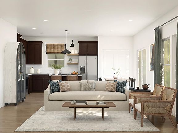 Experience effortless living in the Azalea plan at Aspire at The Trails. This thoughtfully crafted single-story home features 1,392 sq. ft. of well-designed space with 3 bedrooms and 2 baths, offering comfort and flexibility. The Elements-inspired kitchen impresses with warm Sarsaparilla-stained cabinets with satin nickel accents, Valle Nevado granite countertops, and a spacious island ideal for meal prep, casual dining, or entertaining. The kitchen opens to a bright great room and a covered patio, creating a seamless indoor-outdoor flow perfect for relaxing or hosting guests. The private primary suite provides a restful escape with a spa-like bath and a generous walk-in closet. Thoughtful features, like a dedicated laundry room and the signature Stuff of Life storage space makes staying organized simple. With stylish finishes and smart functionality throughout, the Azalea plan brings comfort, convenience, and modern charm to everyday living at Aspire at The Trails.