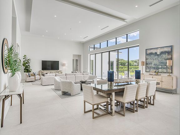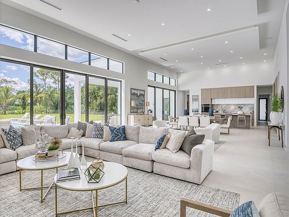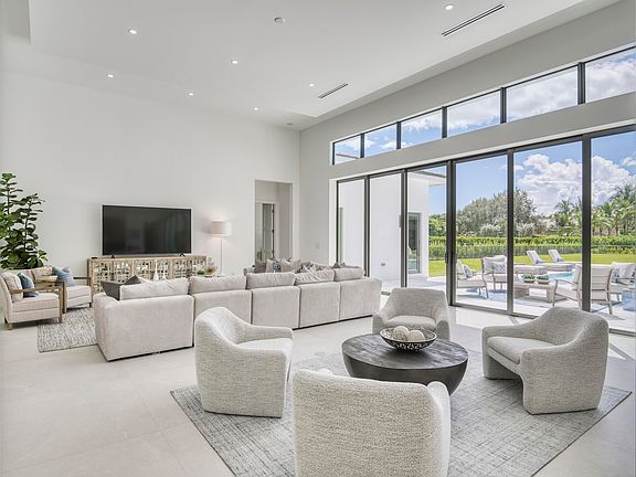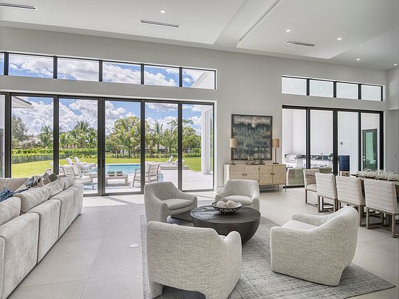 Setting the bar for luxury & elegance in one of the most coveted neighborhoods in Palm Beach Gardens. Spanning nearly 5,000 square feet of pure perfection, this trophy home is in a league of its own, achieving unparalleled scale and quality. The attention to detail, seamless flow throughout and vast nature is realized upon the moment of entry. Sleek back sliders vanish, offering the most dramatic indoor/outdoor living imagined with the most impeccable views of your 1 + acre private backyard and lavish resort style pool. Exuding sophistication and style, this 5 bedroom, 6 bathroom home + Office + Gym and flex space includes massive 15 foot ceilings, a state of the art kitchen with top of the line Sub Zero and Wolf appliances, plus an outdoor summer kitchen with tons of covered patio space.