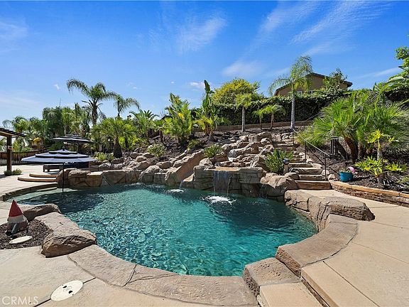 Absolutely stunning home located in the desirable Montecito Ranch community nestled in the hills next to the Cleveland National Forest. Located at the end of a quiet cul-de-sac, the backyard is truly an entertainer’s dream! Spread out over more than ¼ acre, the yard features a rock pool and spa with huge 18 foot waterslide, waterfall, and baja shelf with shallow entry. There is also a half basketball court, fire pit, covered patio, and lots of space on the sides of the house as well. There is also a tranquil seating area at the top level of the backyard with views of the backyard and beyond. Inside you’ll find a formal living room and dining room upon the entry. The kitchen features granite counters, stainless steel appliances and center island. Located off the kitchen is an additional room that can be used for an office/den. 4 bedrooms plus a high loft are located upstairs. All bedrooms are large, but the master bedroom is massive with a large seating area. The primary bathroom has been completely redone & features walk in closets, a large walk in dual shower head shower & stand alone bathtub. This home has solar that has been paid off. Other updates include newer paint and flooring, tankless water heater, newer HVAC system, 200 amp service for car charging, and much more! Just minutes from the 15 freeway, Dos Lagos, The Crossings, Tom's Farms, Trilogy Golf Course, & Glen Ivy Day Spa. Don't miss this great opportunity!