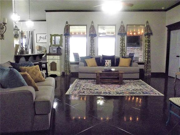 Don't miss this magnificent home with side entry 3 car garage on just over half an acre! This home feautres scored & stained concrete floors with Cherry wax in the main living areas & laminate plank flooring in the bedrooms. Great corner gas fireplace in living room AND a gas fireplace on the covered patio. Large bright windows looking onto the open back yard in living room. Kitchen boasts an island with black granite while the balance of the counters are a lighter granite, beautiful stainless built-in oven and microwave & a stainless gas cooktop. As well as a fantastic breakfast bar!. The master bedroom is an excellent size with 2 bright windows & ceiling fan. The en-suite has a beautiful barn door & is very spacious! It features seperate vanities, large tiled shower & a huge corner jetted tub! The laundry is large with folding space and is access from master walk-in closet and hallway near garage. Secondary beds are bright and spacious as well with beautiful chandelier!