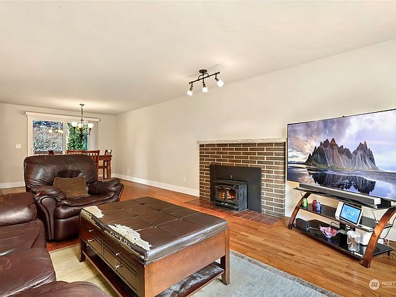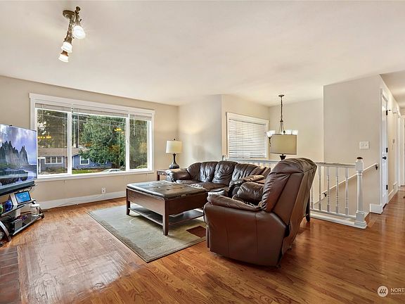 Nicely updated and move-in ready home in desirable Finn Hill location. Main level boasts open concept living with updated kitchen, quartz counter tops, SS appliances, hardwood floors, dining room and expansive living room with fireplace insert. Two bedrooms and main bath upstairs, including primary with full bath en suite and WIC. Lower level features a large family room with fireplace and door to back yard. Additional 2 bedrooms, 3/4 bath and laundry. All updates in the last 10 years include bathrooms, doors, windows, kitchen and roof. Furnace and hot water tank replaced in 2021. Detached garage/shop, electric car charging, large fenced lot, and RV parking. Close to highly rated Lake Washington schools, trails, shopping and services.