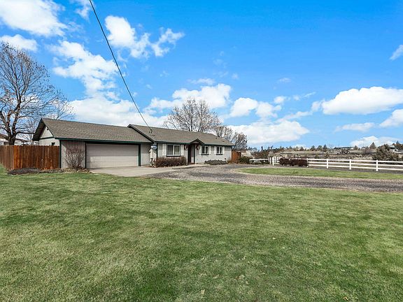 This charming and well-maintained home features 3 bedrooms, 2 bathrooms, and sits on a spacious 1-acre lot. The attached 2-car garage and large gravel pull-through driveway provide ample parking space. The backyard is beautifully landscaped and includes a fenced patio area and a storage shed. Additionally, there's plenty of room for recreational vehicles, including RV and boat parking. It's located just under an hour away from Bend and only 30 minutes away from Redmond.