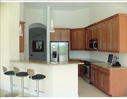 Wonderful Madison model in Tompson Point at PGA Village. Hosting 3 bedrooms, 3.5 baths, den and oversized 2 car garage. Gorgeous over-sized heated pool with screen enclosed lanai boasting fabulous golf and lake view!Comes w/ electric Golf Cart and Charger. Beautiful home in move in condition with home warranty. Features include all bedrooms with their own private bath giving each room a suite feel. Features volume ceilings, tray ceilings and diagonal tile in main areas. Hosting eat in kitchen with dining area, snack bar, pantry, 42" cabinets,stainless steel appliances, granite and tile back splash. Master suite includes 2 walk-in closets with built-in's, tray ceiling and berber carpet. Master bath includes roman tub, separate shower and dual sinks. Large foyer with grand entrance, formal dining room and fabulous 23 x 20 great room area. Beautiful screen enclosed lanai with heated oversized pool with sheer descent waterfalls and salt recovery system overlooking one of PGA'S Pride golf courses 13th hole on (The Wanamaker). Some exterior features include CBS construction, barrel tile roof and paver driveway with side entrance garage. Home includes electric golf cart and charger. Come enjoy PGA's Island Club within walking distance included with HOA fee's with resort style pool, exercise room, library, billiards, card rooms, banquet hall, tennis, basketball and picnic area. A golfers dream with 3 public golf courses, private course and state of the art learning center. Something for everyone enjoy taking a bike ride, a walk or just enjoy your own pool. St. Lucie West is a planned community boasting the NY Mets spring training, new restaurants, stores and plenty to do for all! Treasure Coast beaches are close by so you can enjoy Florida living!