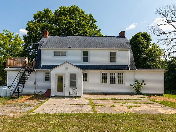 This is a large, spacious home situated on 10.7 acres and has a huge garage which used to be an Auto Body Shop (needs work). It was zoned commercial but lost status due to non conforming. There is great potential to operate a business from this very central location on RT 55. This is a 3 bed 2 bath colonial with new kitchen, (will have new appliances), granite counter top, all hardwood floors throughout upstairs and downstairs have been re-finished. Living room boasts a big fireplace for those cold winter nights. Rooms are spacious and you will appreciate large laundry room upstairs which opens to a large deck. Upstairs bathroom has been completely renovated. New propane Navien water heater was installed 3 years ago.