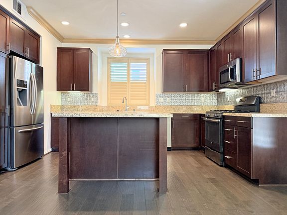 This stunning 1,862 square foot townhouse offers the perfect blend of modern luxury and comfort. With three spacious bedrooms and three well-appointed bathrooms, this home is ideal for families or anyone looking for extra space. The master bedroom boasts a luxurious ensuite with a hot tub and stand-up shower, while two additional bedrooms share a beautifully upgraded Jack-and-Jill bathroom. The expansive living room features a stylish modern accent wall, and the gourmet kitchen is equipped with granite countertops and high-end appliances. Step outside to enjoy a private patio perfect for relaxing or entertaining. Additional highlights include an attached two-car garage and access to a vibrant HOA community, complete with family barbecues and a sparkling pool. Built in 2015, this home is situated in a well-maintained neighborhood AAA and yes, dogs under 30lbs are welcome!