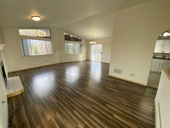 RARE 3 car heated garage in this price range! HUGE backyard backed up to Ft Richardson with unobstructed mountain views. Newer flooring and stainless appliances, including gas range. Cathedral ceilings in upstairs living area and extra large windows provide excellent views of mountains and forest. Efficient natural gas-powered in-floor heat. 130 mph rated roof replaced in 2012.