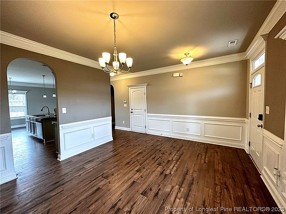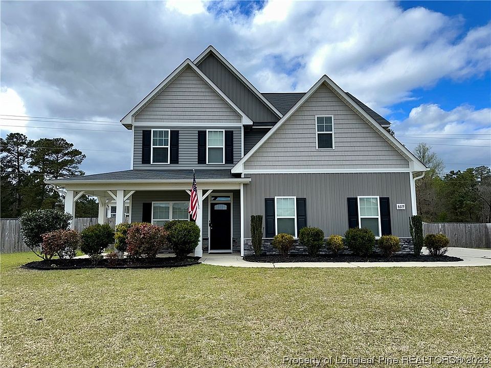 This elegant single-family home in the beautiful Silver Creek community is move in ready and conveniently located close to Fayetteville, Fort Bragg & 295. Wrap around porch with porch swing with multiple security devices already installed. Spacious open floor plan with gourmet kitchen, granite counters, subway tile back splash and a kitchen island with breakfast bar that flows perfectly between the formal dining and living room with a fireplace. Upstairs there are three impressively large and spacious bedrooms, along with a bonus room that can be used as a 4th bedroom. Large master suite with trey ceiling, double vanity, garden tub with separate shower & L-shaped walk-in closet. Large fenced in backyard with screened in patio gives the home a charming country feel on this over half acre lot. This home is a must see!