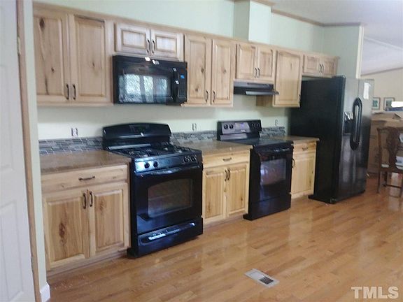 Upgraded and Improved Manufactured Home on Permanent Foundation. Features Real Hardwood Floors, Granite Kitchen Counters, Electric & Gas Ranges, Under Counter Lighting. That's right! 2 ranges for incredible cooking capacity! Large Walk In Closets! Wood Burning Fireplace! Range Hood Vents Outside! Large, Wooded Lot! No HOA! Rural Living but close to Fuquay Varina, McGees Crossroads, I-40! Come Take a Look!