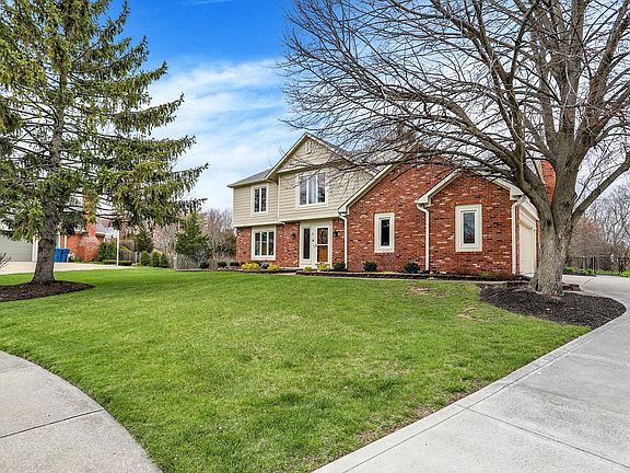 Nestled in the heart of Carmel, Indiana, on a tranquil cul-de-sac, this charming two-story residence exudes warmth and modernity. Boasting four bedrooms, two and a half baths, and a meticulously updated interior, this home offers the epitome of comfort and style. As you approach, the curb appeal is evident, with lush, mature landscaping framing the exterior. The wedge-shaped lot provides ample space and privacy, creating a serene oasis within a bustling neighborhood. Upon entry, you are greeted by a welcoming foyer that leads seamlessly into the main living areas. The downstairs has been completely renovated, showcasing contemporary finishes and an open-concept design. Gleaming hardwood floors flow throughout, complemented by fresh neutral tones that create an airy ambiance. The gourmet kitchen is a chef's delight, featuring stainless steel appliances, granite countertops, and ample cabinetry for storage. A spacious island offers additional prep space and doubles as a casual dining area, perfect for morning coffee or quick meals on the go. The kitchen overlooks the cozy family room, complete with a fireplace, creating an ideal space for entertaining or simply relaxing with loved ones. Upstairs, the four bedrooms provide plenty of room for the whole family to spread out and unwind. The master suite is a luxurious retreat, boasting a spa-like ensuite bath with dual sinks and a large shower. Three additional bedrooms share a well-appointed full bath, ensuring comfort and convenience for all. Outside, the backyard beckons with its expansive patio, ideal for al fresco dining or enjoying the serene surroundings. The hardy landscaping requires minimal maintenance, allowing you to spend more time enjoying the outdoors. Located in the highly sought-after Carmel school district, this home offers access to top-rated schools and a vibrant community atmosphere. With its prime location, modern updates, and abundant charm, this property truly