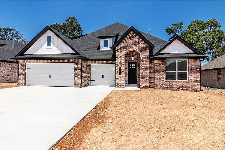 New Construction, S-dale Har-Ber district home with smartly designed custom floor plan that includes 4bedrooms, 3 full baths, and 3 car garage. Custom cabinets, granite, hardwoods, ceramic tile, and carpet in bedrooms. Covered back porch is wired for TV, plumbed with gas, and overlooks fully sodded& professionally landscaped yard.