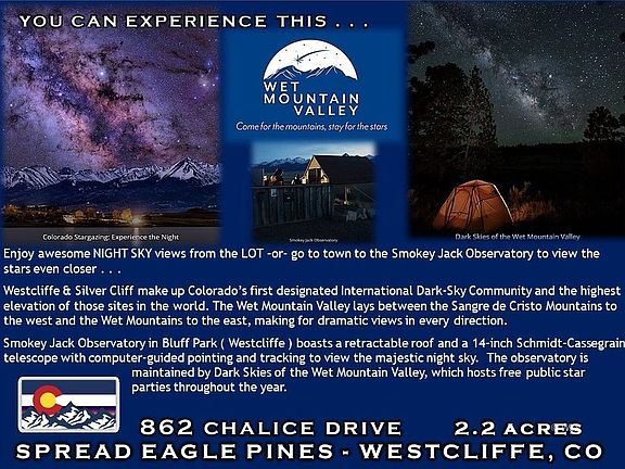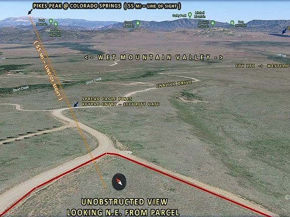 SPREAD EAGLE PINES - Spectacular views of the Sangres! Located approx. 15 minutes NW of the charming Western town of Westcliffe CO in the exclusive Spread Eagle Pines subdivision this 2.2-acre parcel has so much to offer! Gently rolling wildflower meadows with Pikes Peak in the distance, panoramic views of the nearby Sangre de Cristo Mountains and the Wet Mountain Valley below you. In addition the property has year round locked gate access, central water and private access to the San Isabel National Forest and Rainbow Trail! A perfect location to enjoy all the attractions the area has to offer!